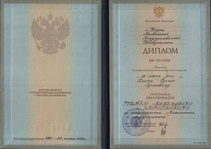Диплом ДВС 0315226, регистрационный номер 8961 от 22.06.2001